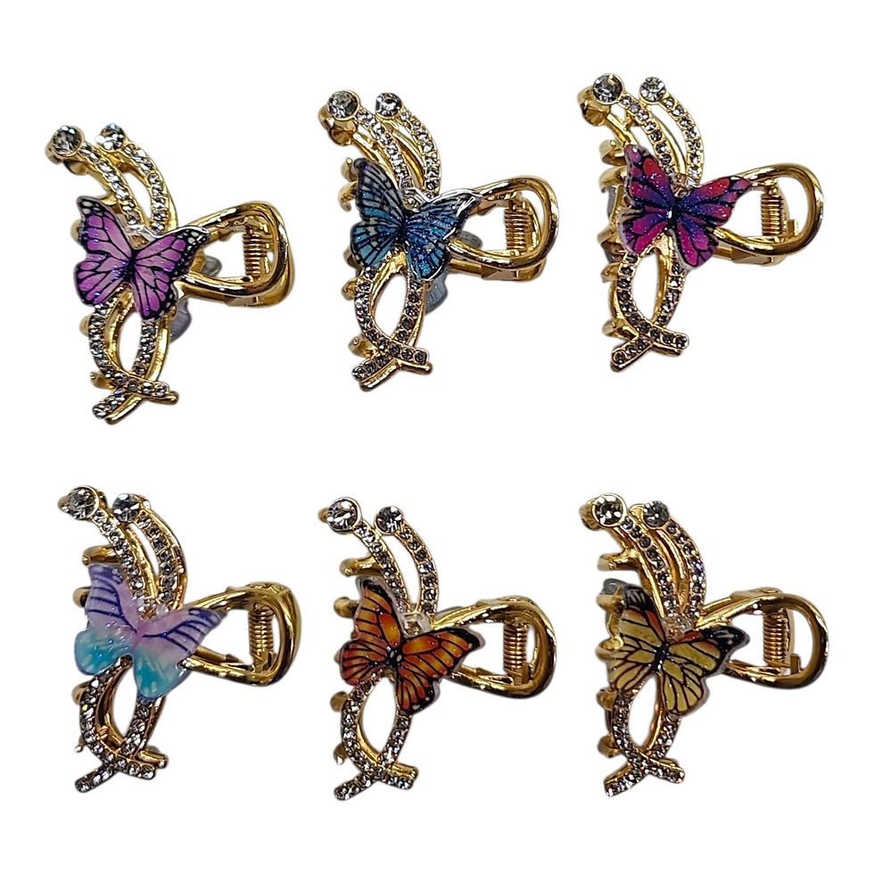 Broches de metal dorado con stras y aplique de mariposa 5cm C/u.